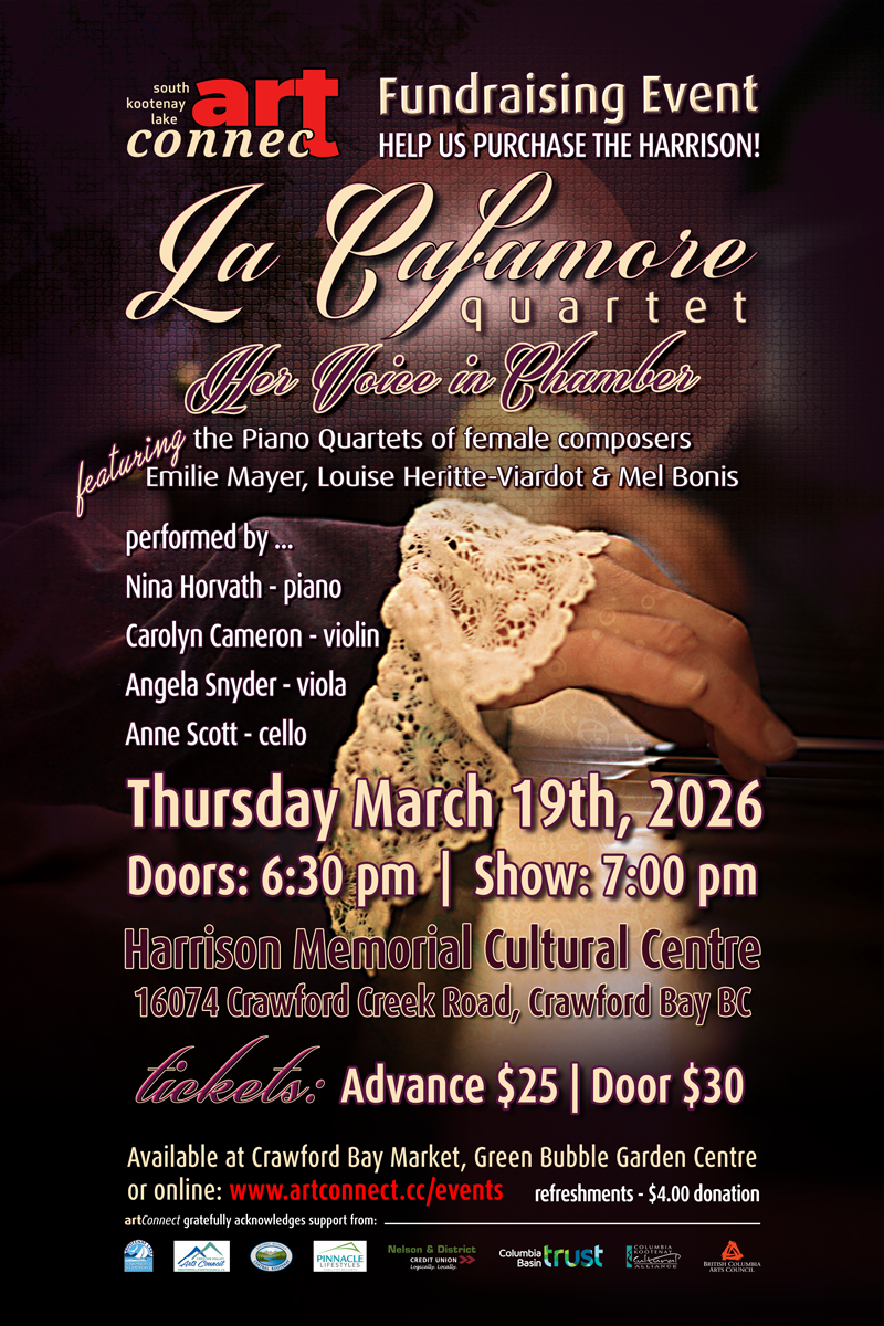 Advance Tickets available soon at The Market in Crawford Bay, Green Bubble Garden Centre or using the link below …