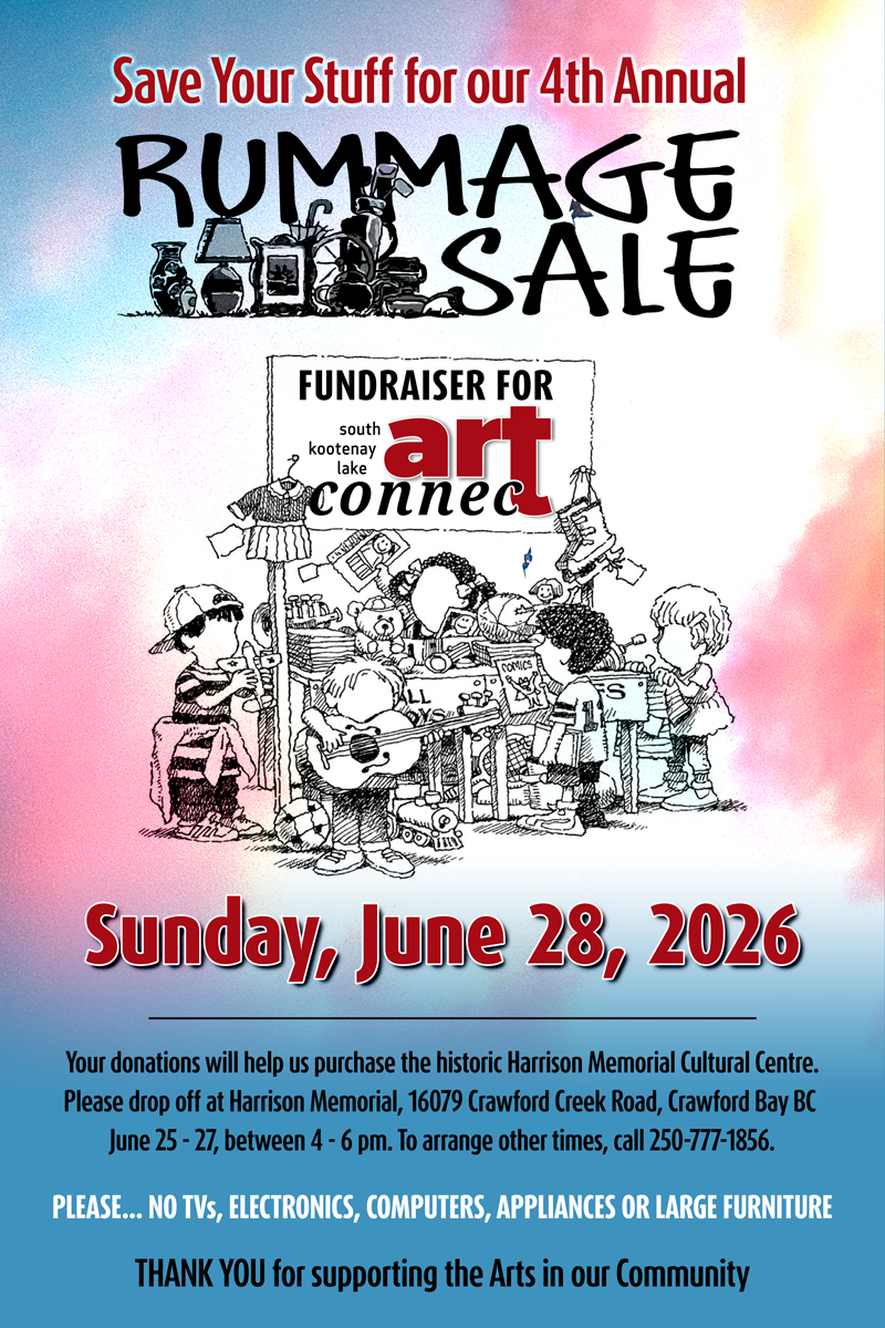 Start saving your best stuff for our 4th annual Rummage Sale Event to help artConnect purchase the Harrison Memorial Cultural Centre as a permanent creative arts venue for our community.